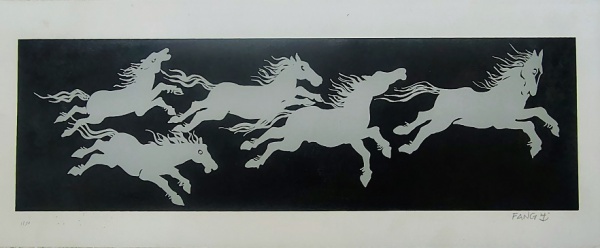 • Fang, Cavalo Prateado, gravura, tiragem 11/50, sem moldura, 20x50cm, necessita de limpeza