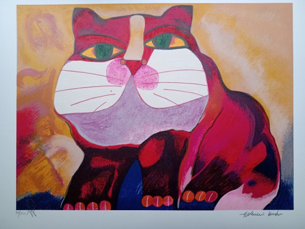 • Aldemir Martins, Gato Vermelho, gravura, tiragem 28/120, 50x70cm, sem moldura, Edição Póstuma