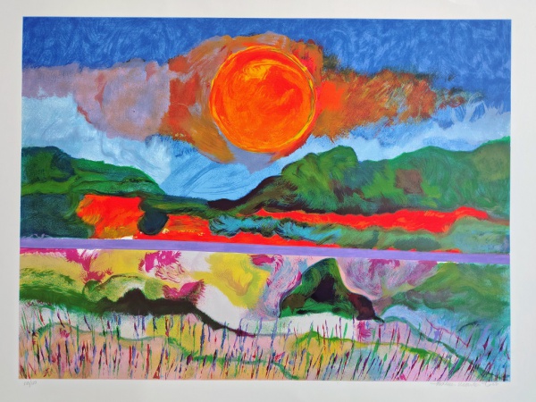 • Aldemir Martins, Paisagem, gravura assinada pelo artista, tiragem 150/150, 70x100cm, com pequena quebra de papel na borda, sem moldura